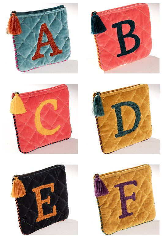 Hand Embroidered Initial Velvet Pouch