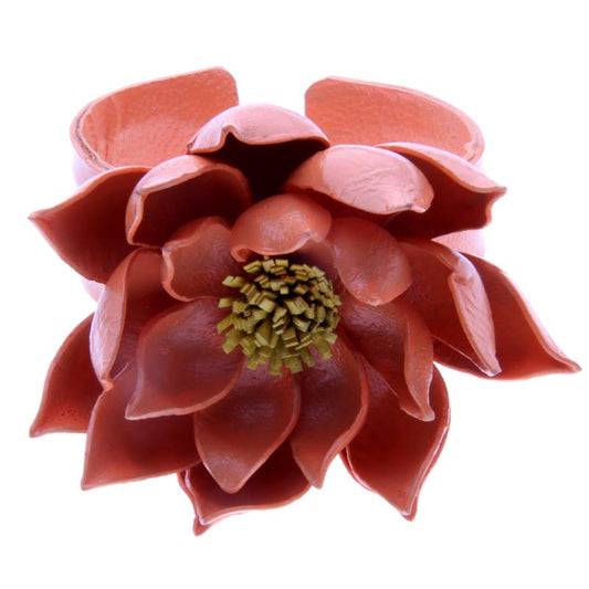 Leather Lotus Flower Cuff Bracelet