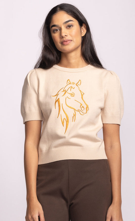 Horse Short Sleeve Knit Top