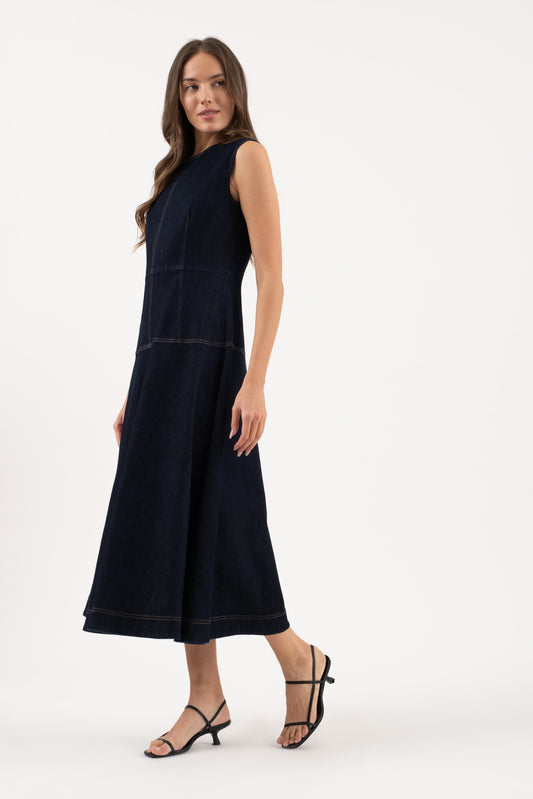 Denim A-Line Midi Dress