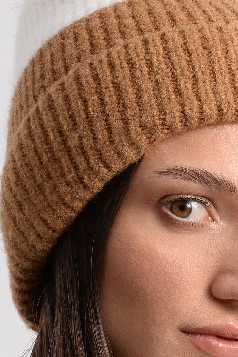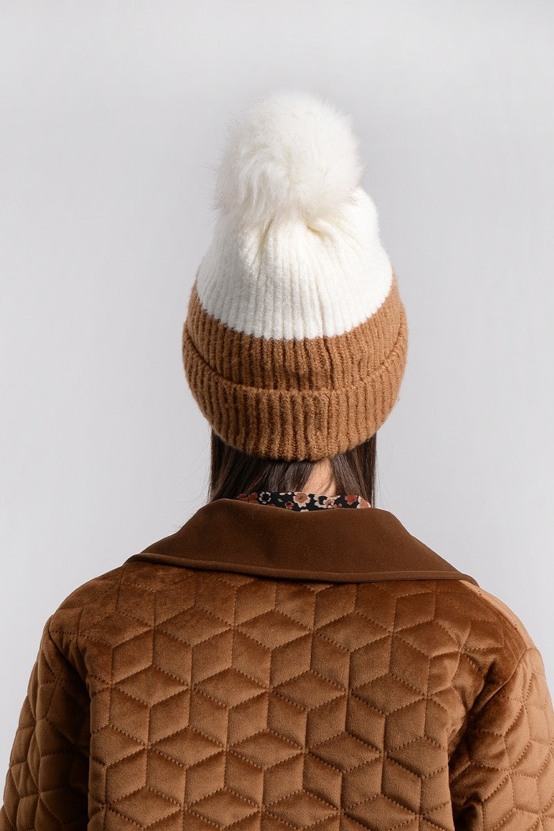 Color Block Pom Beanie