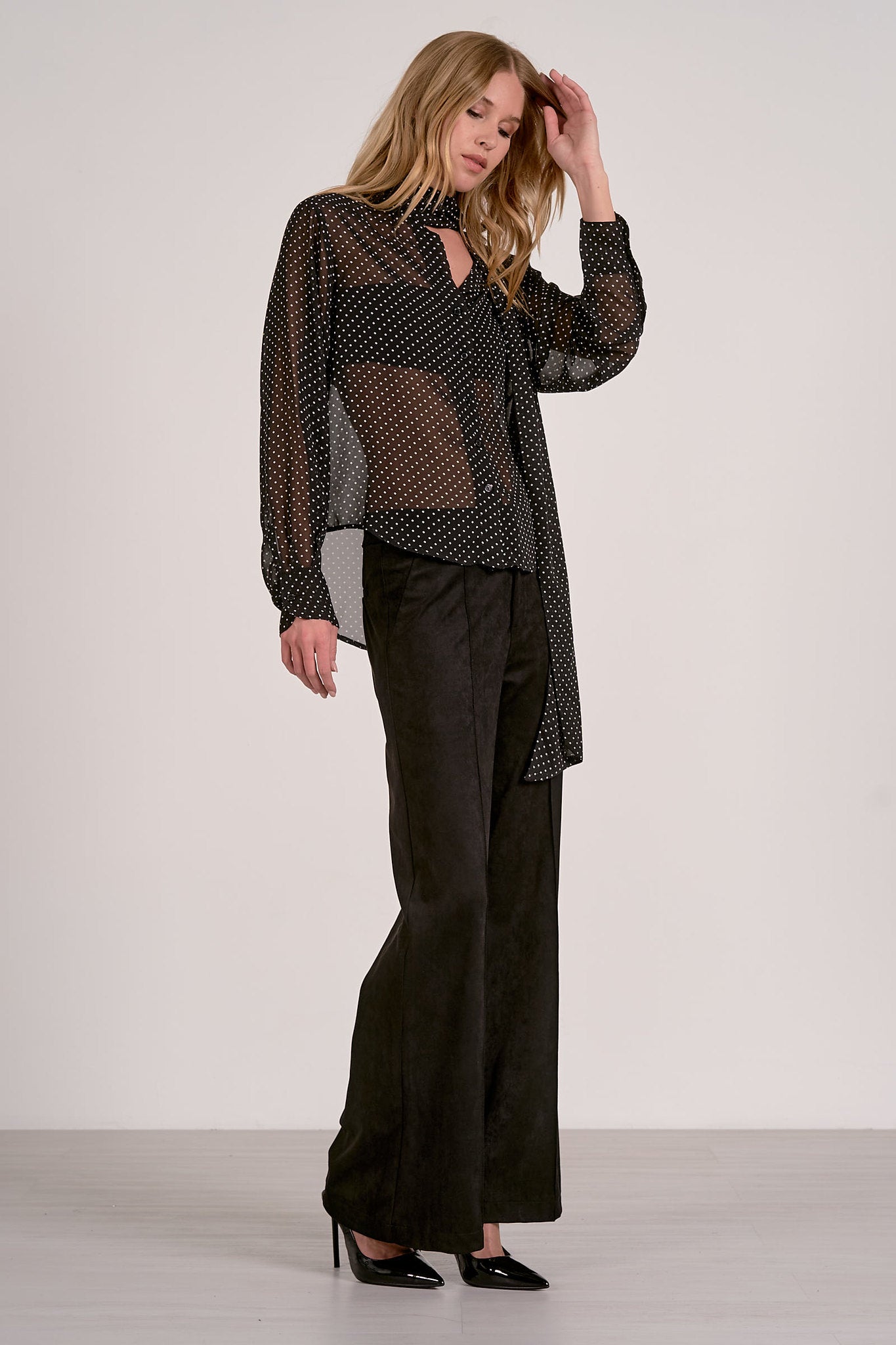 Polka Dot Bow Tie Blouse